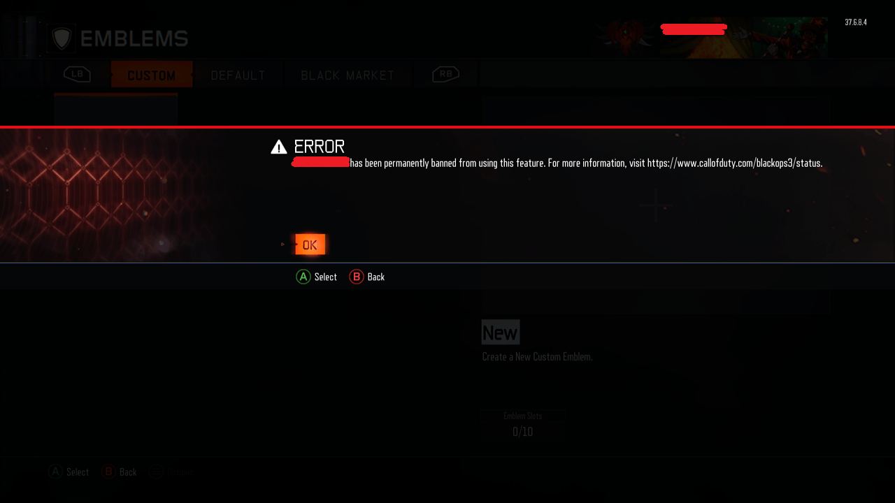 A quanto pare, dati i recenti avvenimenti, non potevano di certo mancare gli emblemi correlati al terrorismo, al nazismo e come ormai di norma a quelli di sfondo sessuale. Quindi se fate parte di coloro che sfoggiano uno di questi divertentissimi emblemi in partite multiplayer, non sorprendetevi alla vista di questo avviso.