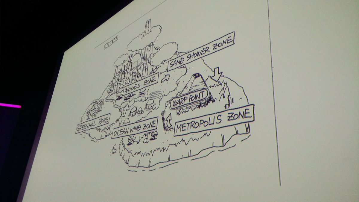 In mattinata, Hirokazu Yasuhara, un membro dello staff che ha lavorato a Sonic 2, ha mostrato alcuni schizzi preparatori dedicati alle mappe del gioco.