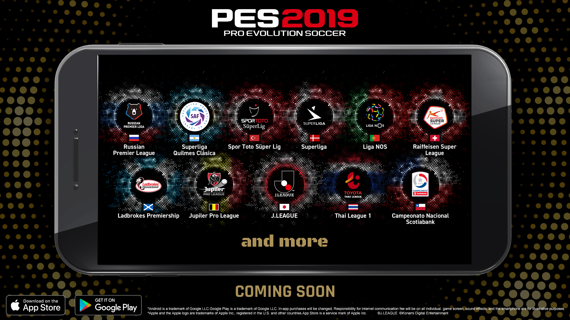 PES 2019 mobile includerà anche 10 nuove licenze dei campionati di Europa, Sud America e Asia, tra cui la SPL Scozzese, la J.LEAGUE* Giapponese e, in esclusiva, la Premier Liga Russa.