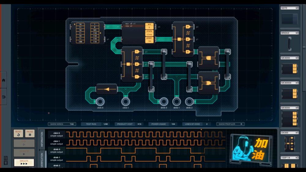 SHENZHEN I/O condivide il linguaggio simil-Assembly di TIS-100, ma aggiunge la possibilità di