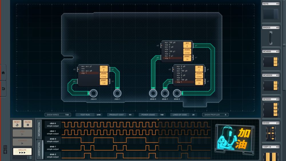 SHENZHEN I/O condivide il linguaggio simil-Assembly di TIS-100, ma aggiunge la possibilità di