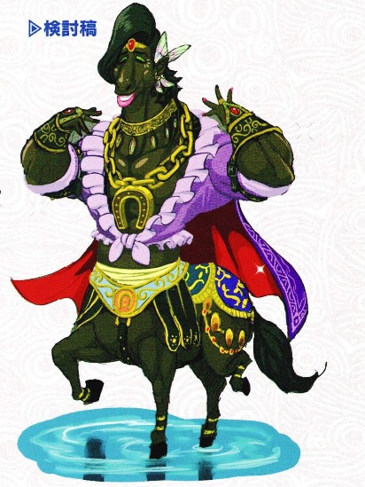 Il prossimo in elenco è il dio cavallo. L’aspetto che vedete sopra è molto diverso da quello presente nel titolo; Lava Cut Content lo definisce più “fiammeggiante” e ipotizza che la personalità di questo personaggio potesse essere più stravagante.