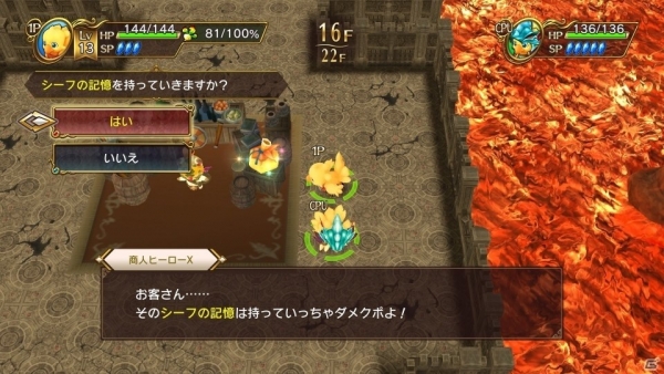 Esplora le sfide in dungeon senza fine (“Fame insaziabile”), aiuta i mostri con il nuovo buddy sistem. Dovrai sottostare a una regola soltanto … ogni volta che entrerai, il mondo intorno a te cambierà forma, ma si sposterà solo quando si muove Chocobo!