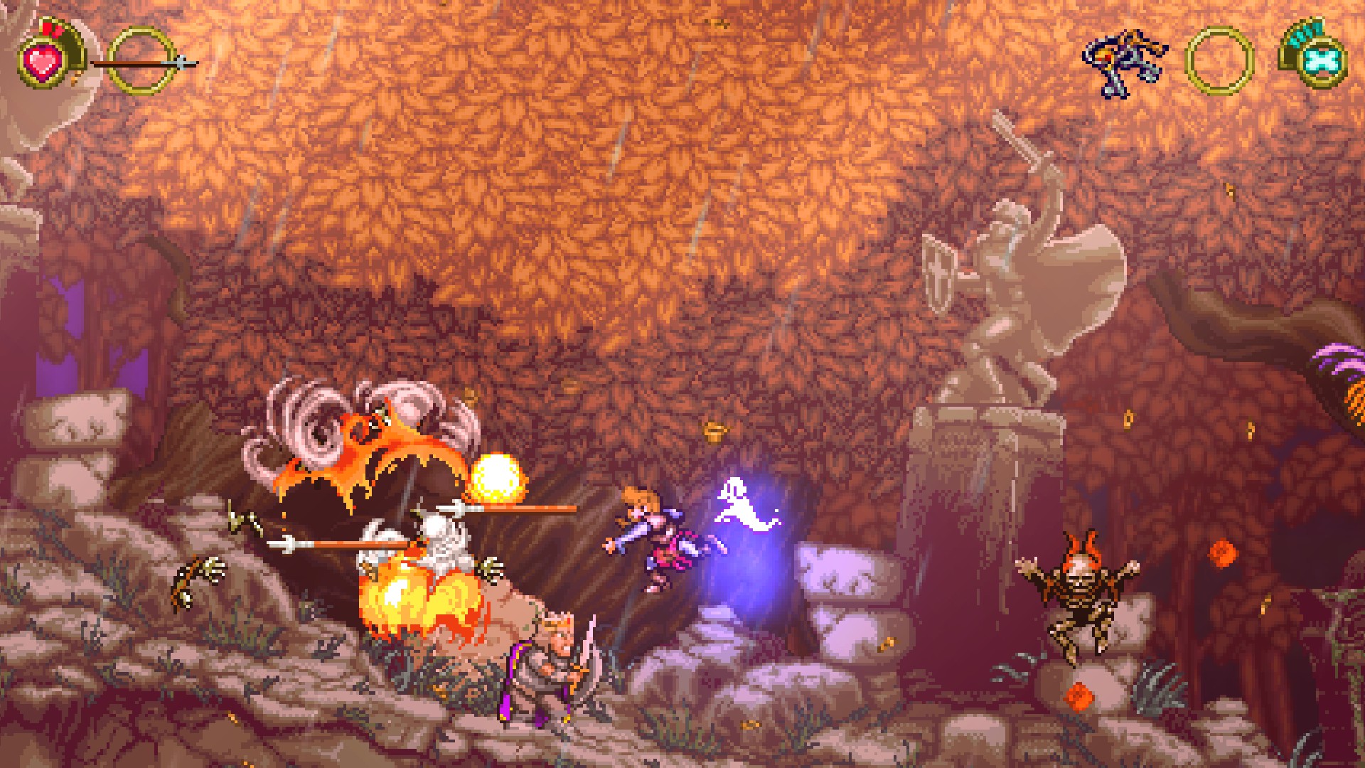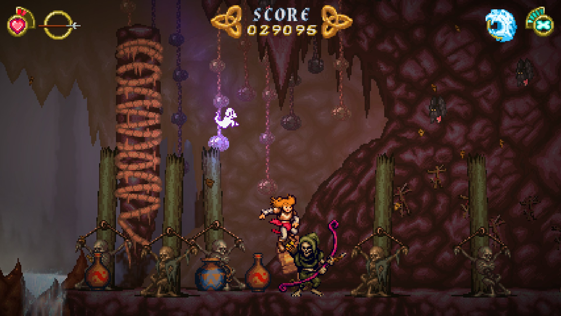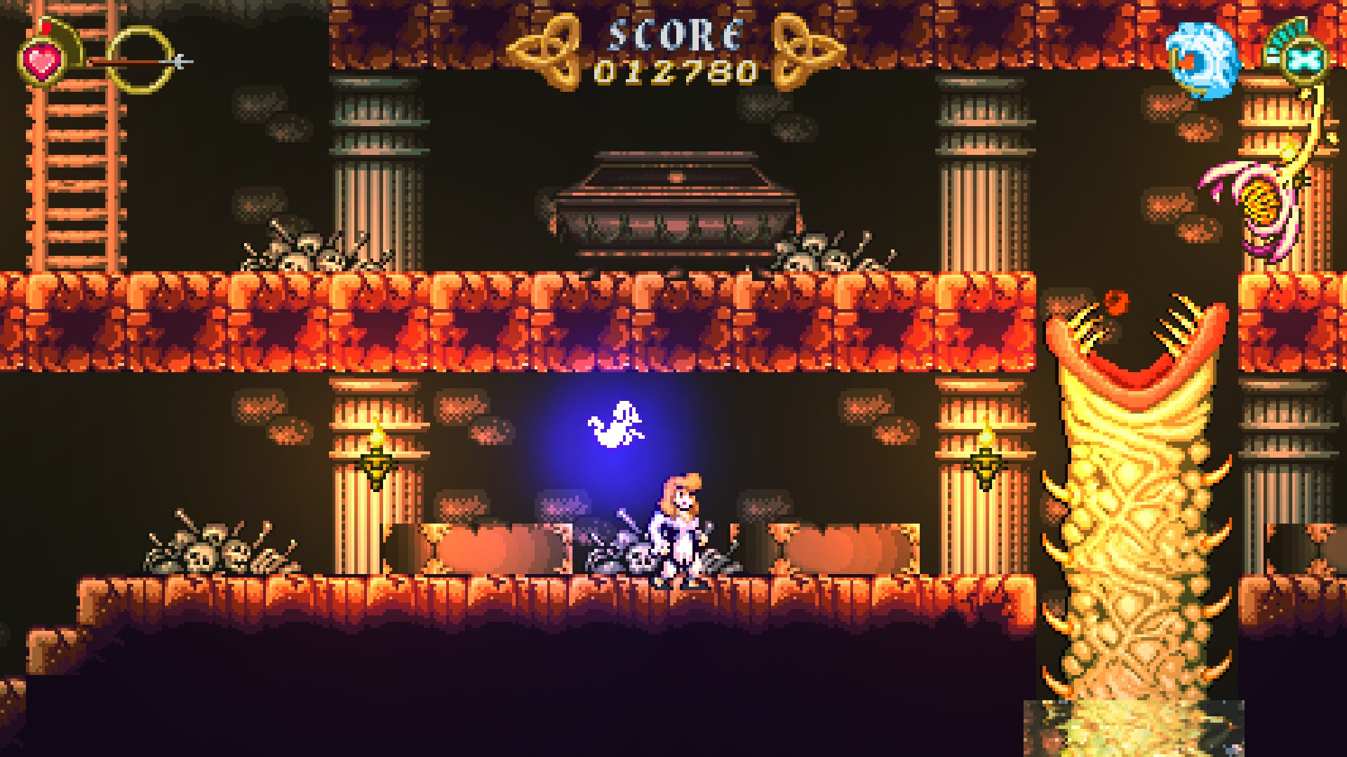 dichiaratamente ispirato alla serie Ghosts ‘n Goblins, a tratti forse eccessivamente: la prima arma in nostro possesso è un giavellotto, la protagonista perde l’armatura quando rimane con un singolo punto ferita (